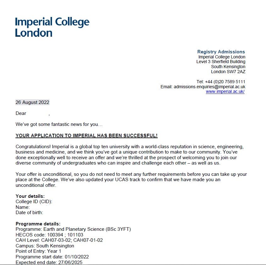 한○○학생의 Imperial College London 입학을 축하합니다