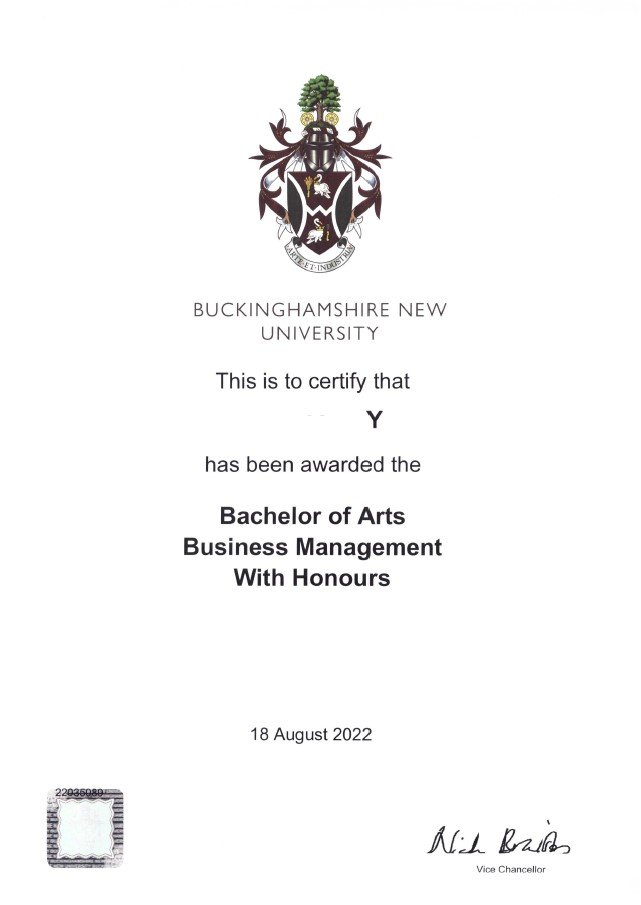 이○○학생의 Buckinghamshire New University 졸업을 축하합니다
