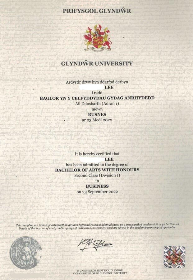 이○○학생의 Glyndwr University 졸업을 축하합니다