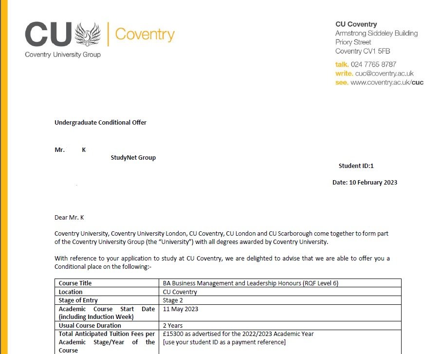 강○○학생의 Coventry University 합격을 축하합니다