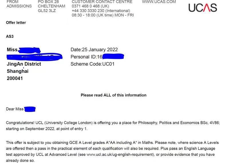 장○○학생의 UCL (University College London) 합격을 축하합니다