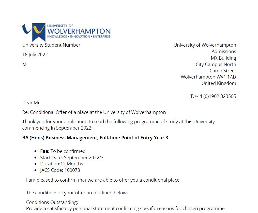 나○○학생의 University of Wolverhampton 합격을 축하합니다