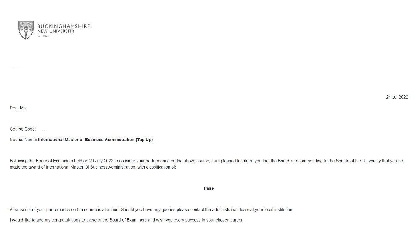 이○○학생의 Buckinghamshire New University 졸업을 축하합니다